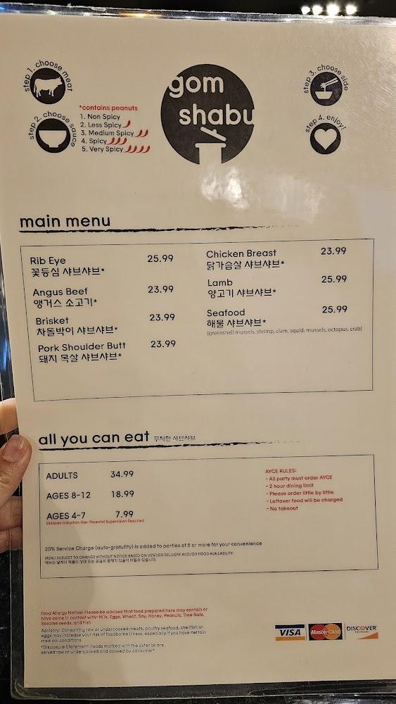 Discover the delight of authentic Korean cuisine at Gom Shabu Shabu - Centreville, where we specialize in traditional shabu-shabu dishes that provide a unique dining experience. Located at 13840 Braddock Rd F, our cozy restaurant offers a relaxed ambiance perfect for groups and individuals alike. Enjoy a delectable meal with options for dine-in, takeout, or delivery. With a focus on quick service and healthy, vegetarian-friendly offerings, our signature all-you-can-eat menu will tantalize your taste buds. Accessible facilities ensure everyone can join in on the flavorful adventure. Call us today at +1 703-266-2931 to make your reservation!
